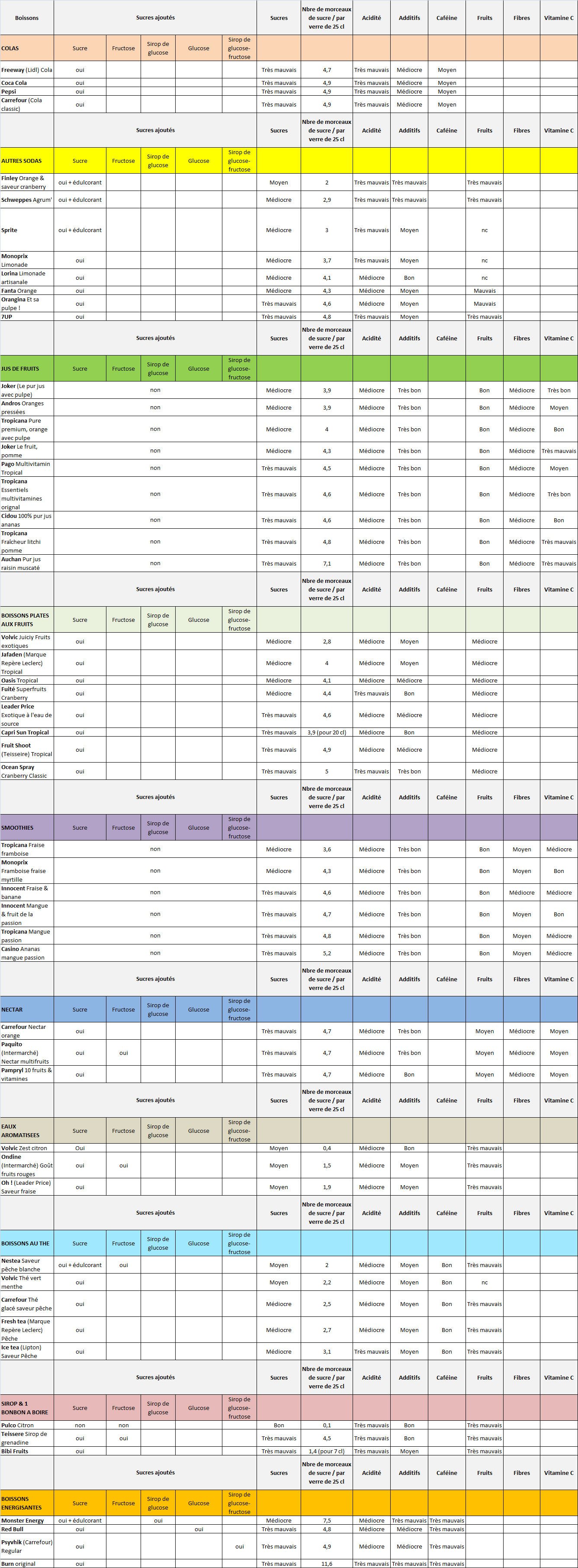 Jus de fruits, sodas, nectars de fruits, smoothies, boissons énergisantes, tous sont passés au peigne fin et les résultats sont alarmants. Les industriels ont pour objectif de vendre, votre santé leur importe peu !